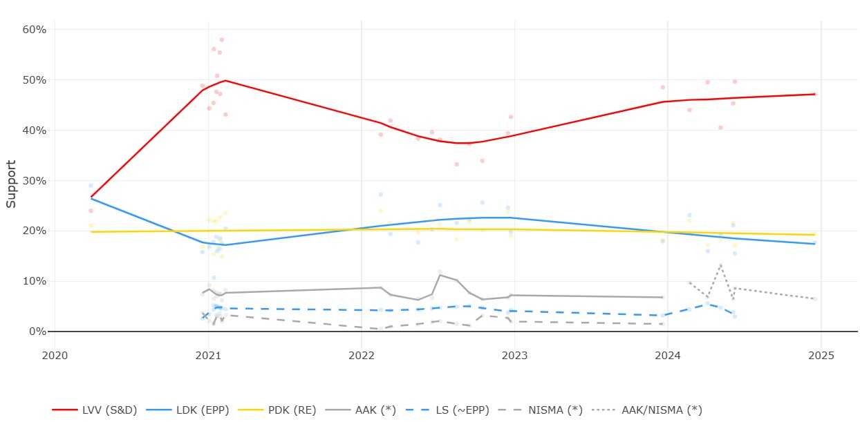 LVV, prema istraživanju portala Europeelects krajem decembra imao je skoro 48 posto glasova.