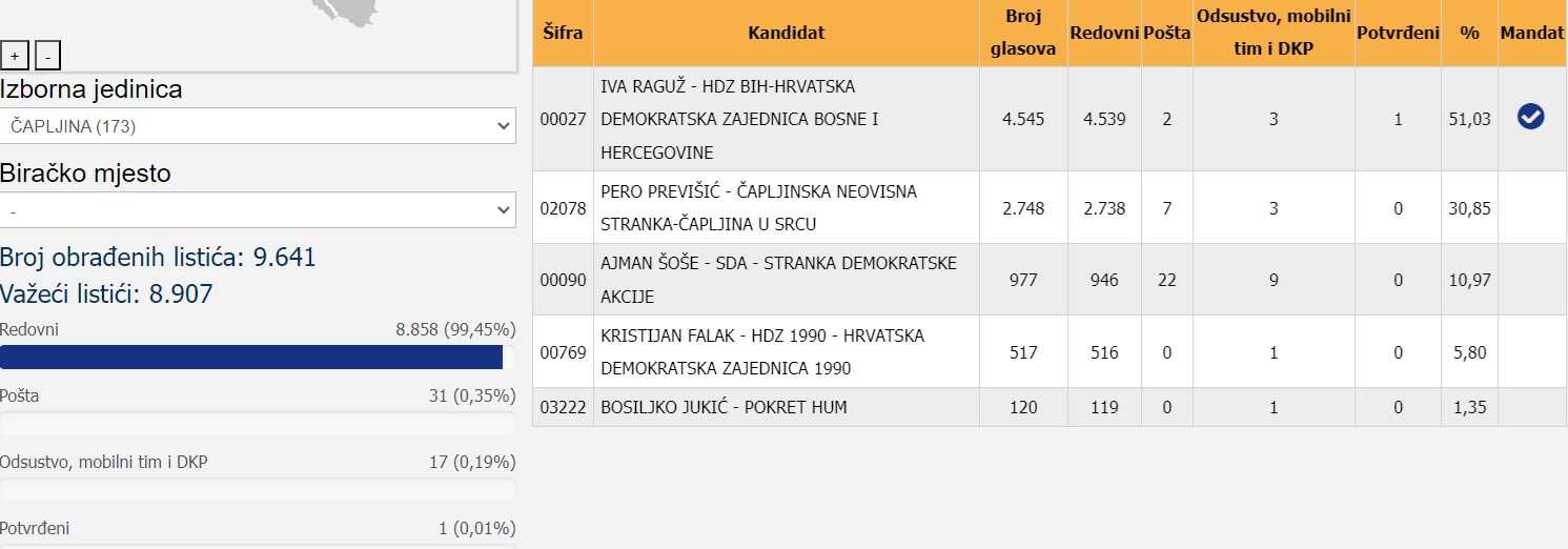 Kako je Politicki.ba već ranije objavio, Hrvatska demokratska zajednica Bosne i Hercegovine, prema privim, preliminarnim rezultatima brojanja, uspjela je osigurati 13, od ukupno 25 vijećnika Gradskog vijeća.