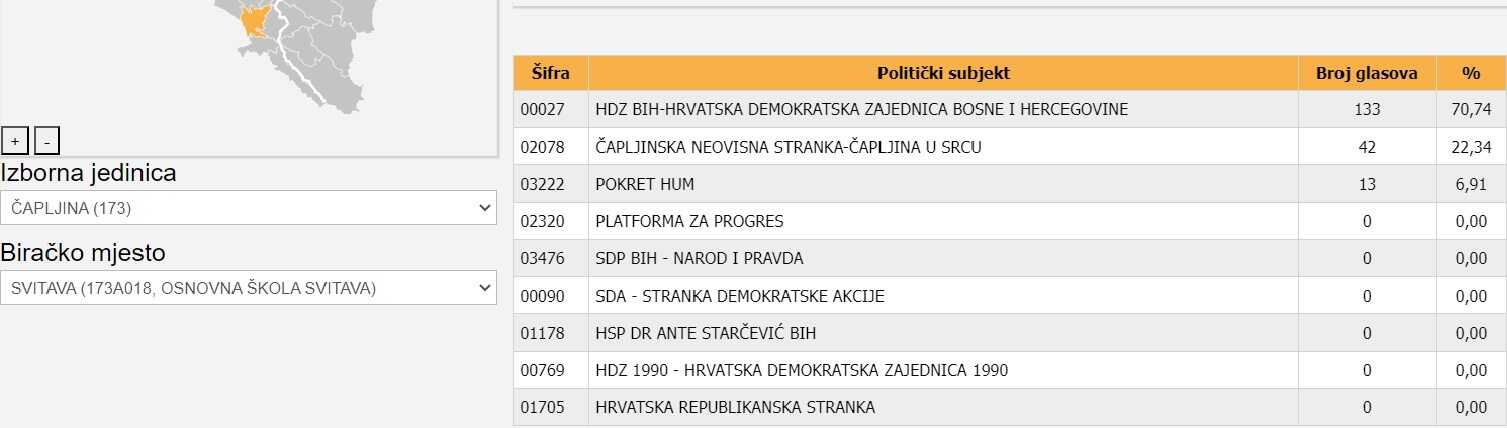 "Mi na Svitavi imamo najmanje 2 glasa. Iako je objavljeno da nismo na tom glasačkom mjestu dobili ni jedan glas. Imamo potpisane izjave dva birača da su glasali za nas", tvrde u razgovoru za Politicki.ba iz HRS-a Čapljina.