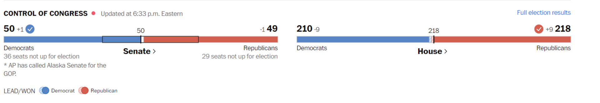 To je daleko ispod "crvenog talasa" koji su najavljivali prije 8. novembra, kada su Amerikanci izašli na glasanje za Predstavnički dom, dio Senata i guvernere.