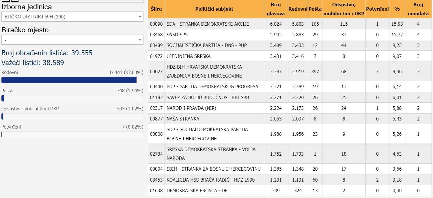Niti jedna stranka u Brčko Distriktu Bosne i Hercegovine nije ostvarila ubjedljiv rezultat.