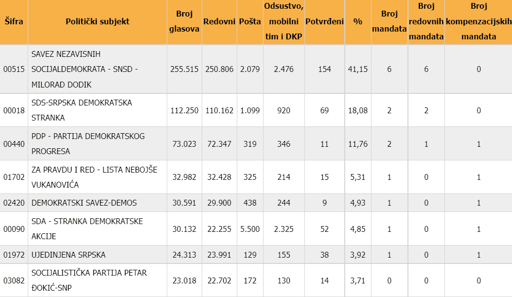Utvrđene nezvanične liste za sve nivoe vlasti u Bosni i Hercegovini, osim predsjednika i potpredsjednika entiteta Rs, možete pogledati na OVOM linku.