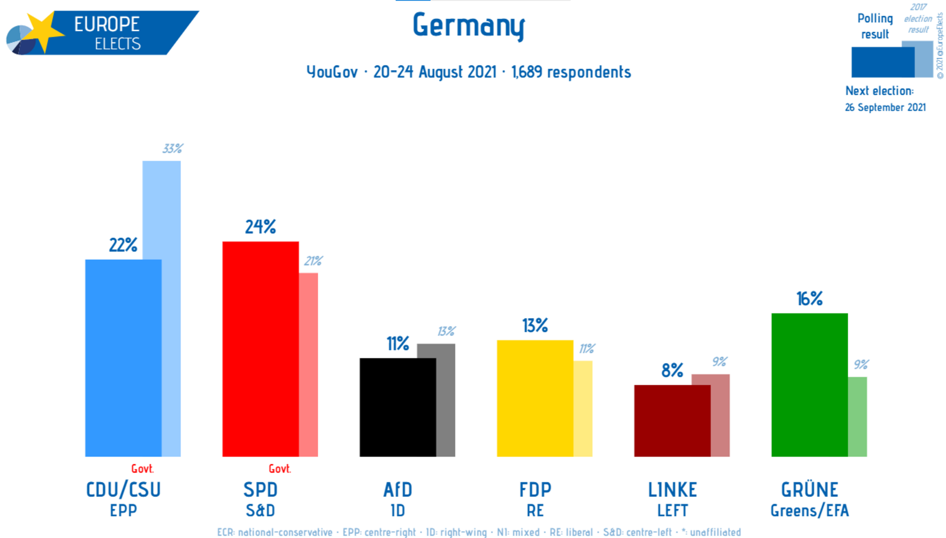 Istraživanje YouGov provedeno je od 20. do 24. augusta i jedno je od najsvježijih odraza raspoloženja javnog mnijenja u Njemačkoj.