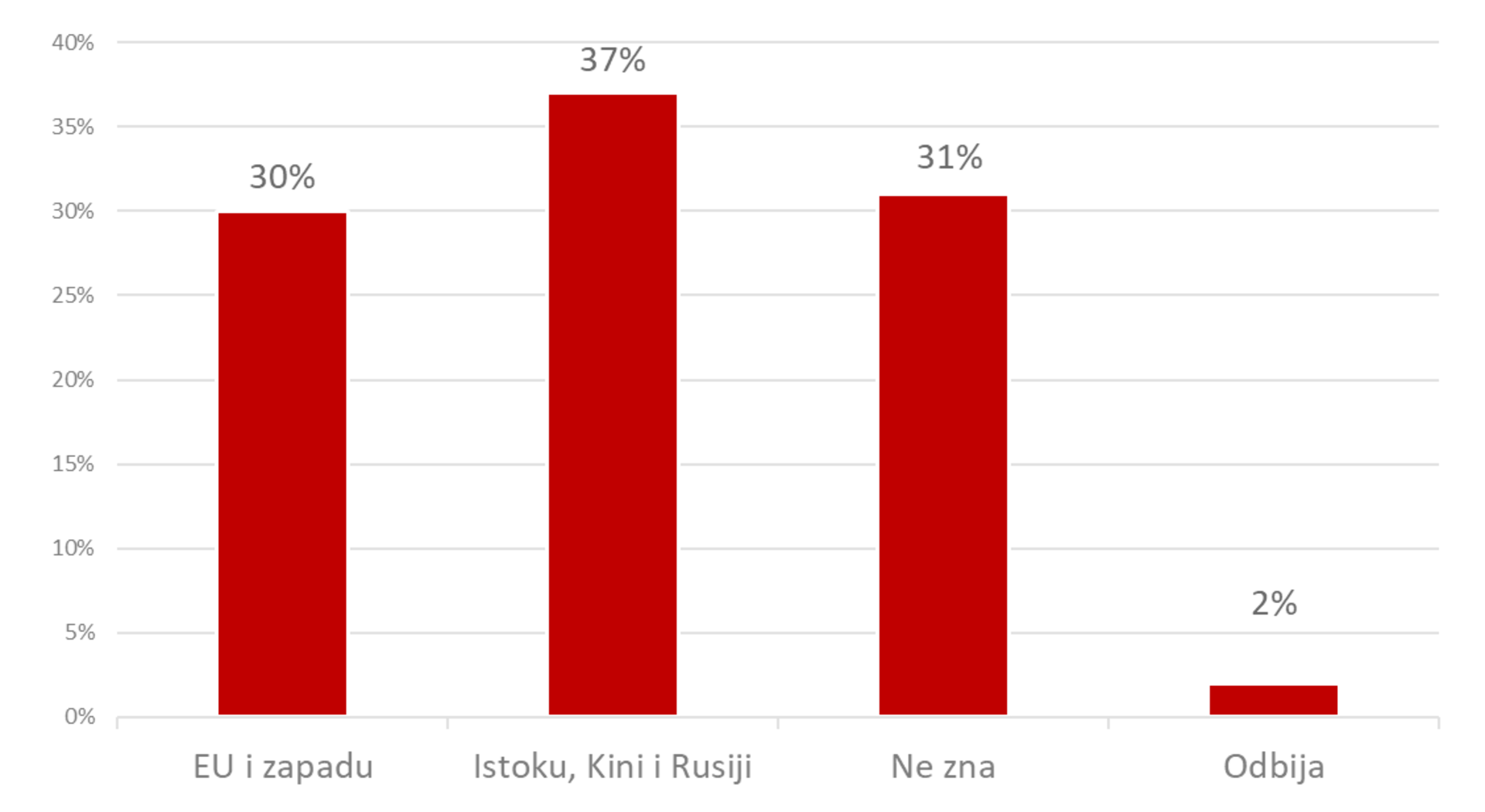 Budućnost Srbije je u Istoku, u bloku sa Rusijom i Kinom, smatra 37 posto državljana te zemlje.
