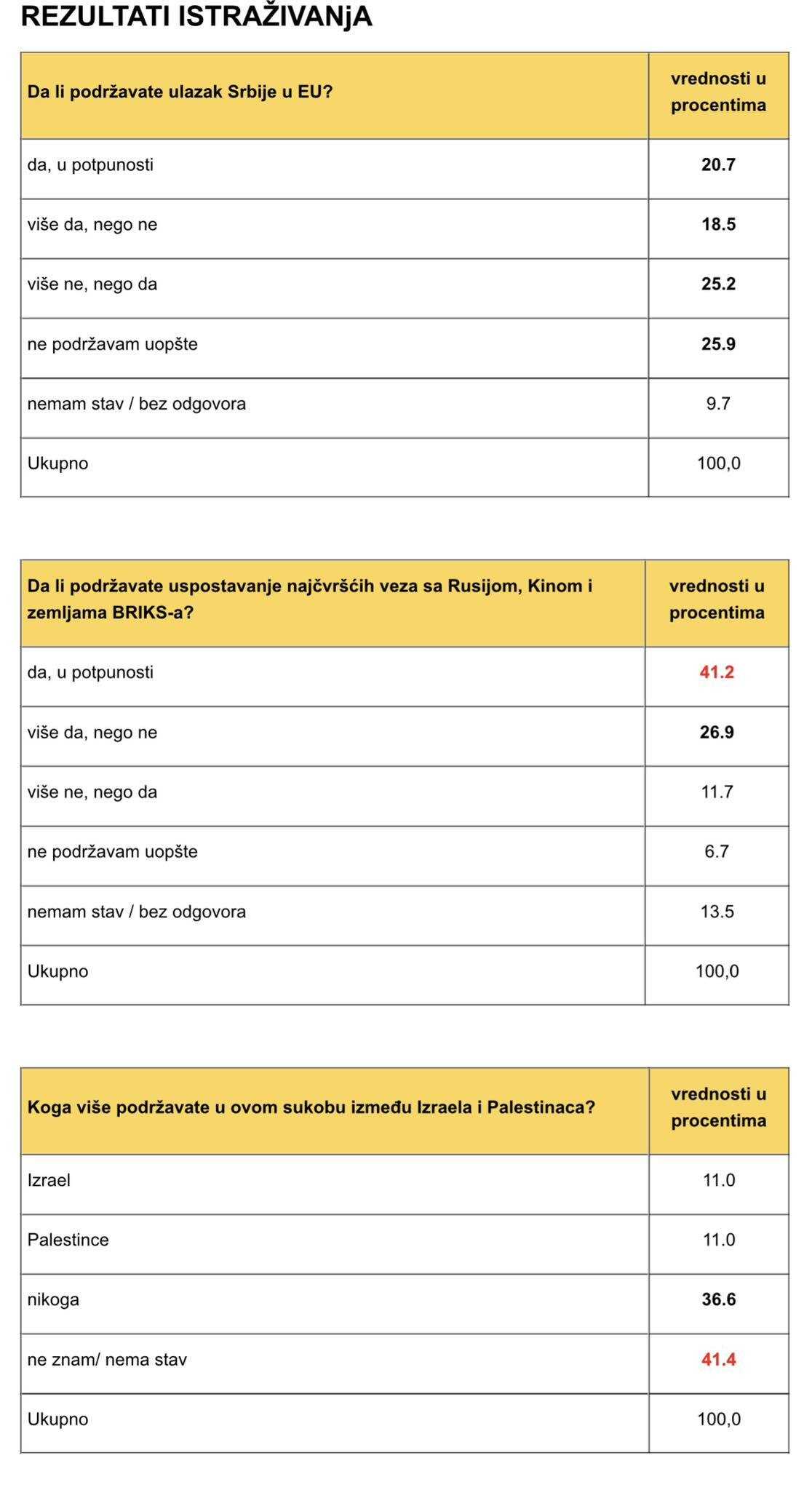 natpolovični broj ispitanika protiv EU integracija a više od 68 odsto je onih
