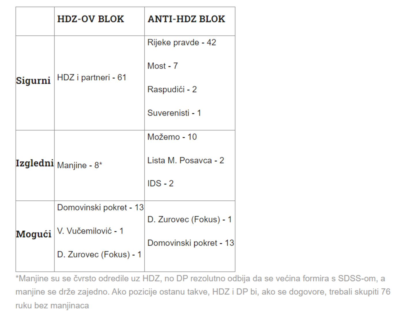 Jasno je da taj blok ne može bez ruku Domovinskog pokreta, osim ako se dogodi potpuni preokret s manjinama, s čijim bi rukama također došli do famoznog broja 76.