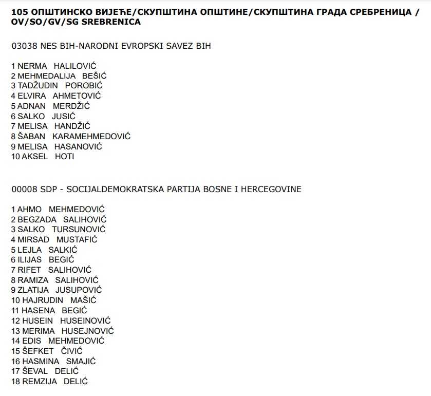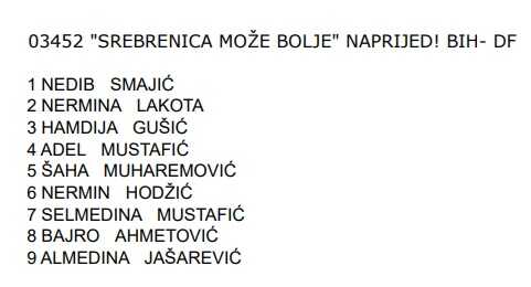 SDA i S BiH imaju svoju, DF i Naprijed svoju, a SDP, NES i NiP nastupaju sa svojim odvojenim listama za Općinsko vijeće Srebrenice.