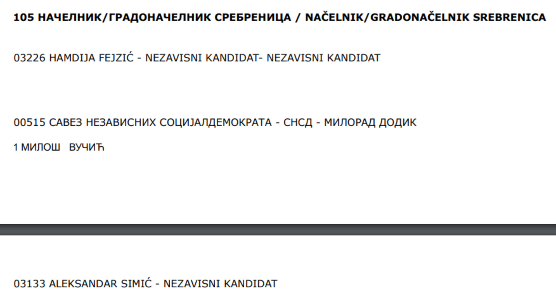 Hamdija Fejzić, Miloš Vučić i Aleksandar Simić verificirani su kao kandidati za načelnika Srebrenice.