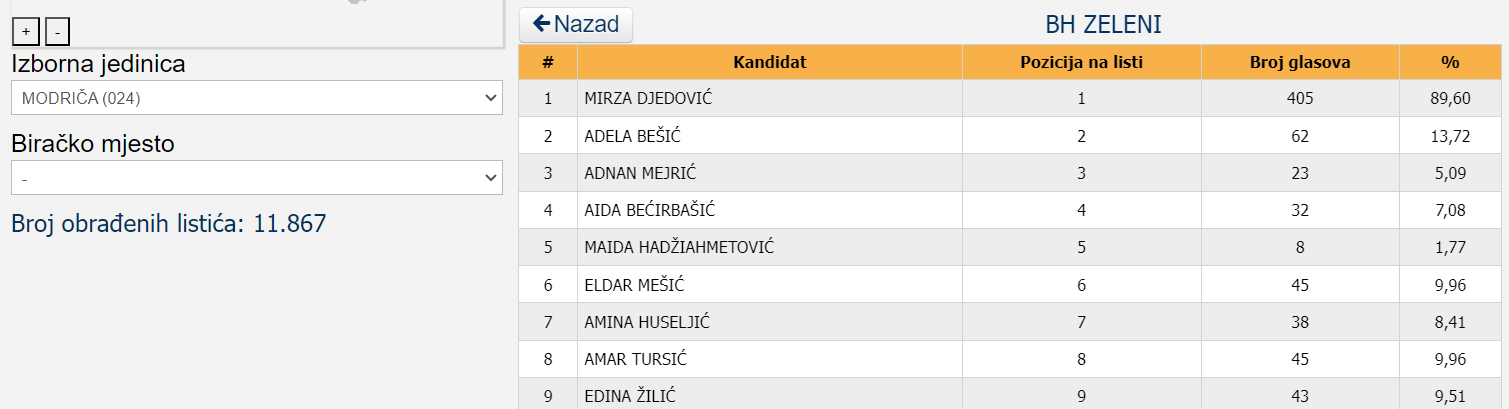 BH Zeleni, iako relativno nova stranka, su ostvarili značajnije bolji rezultat.