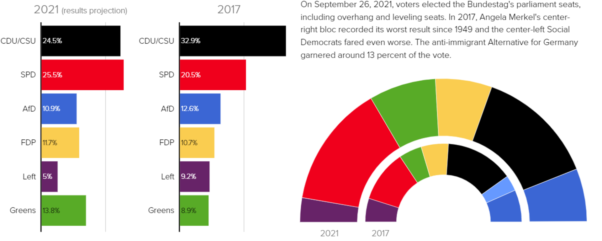 Demokršćanski blok (CDU/CSU) dobio je 24,2 procenata i trebali bi imati 195 poslanika.