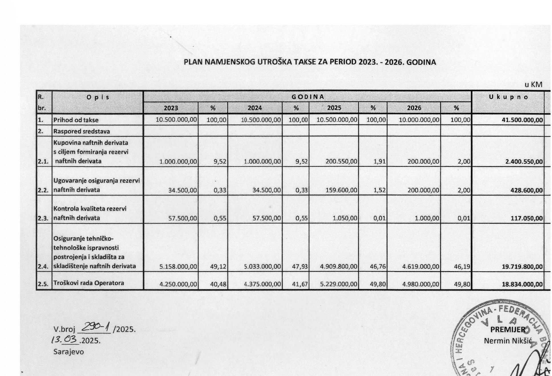 Ako se neko pita zašto su rezerve nafte u FBiH minimalne, u prilogu je raspodjela sredstava od taksi za obavezne rezerve nafte i naftnih derivata. Ovu taksu indirektno plaćaju svi vozači u FBiH.