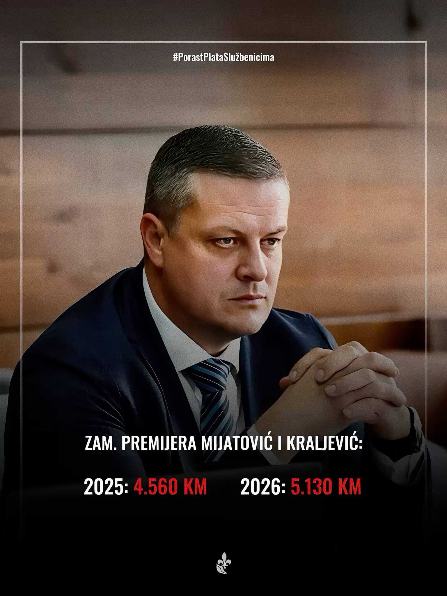 Čelnici entiteta Federacija Bosne i Hercegovine donijeli su odluku o znatnom povećanju svojih plaća za 2026. godinu – predsjednica F BiH, premijer, zamjenici premijera i predsjedavajući Parlamenta bit će u narednoj godini plaćeni više za oko 500 KM ili više, što je izazvalo pažnju javnosti usred rasprava o rastu troškova života i minimalnoj plaći radnika.