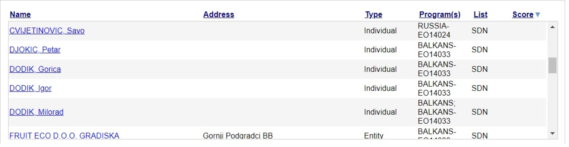 Firma Fruit Eco iz Bosanske Gradiške, na crnoj je listi SAD jer je u vlasništvu Dodikovih.