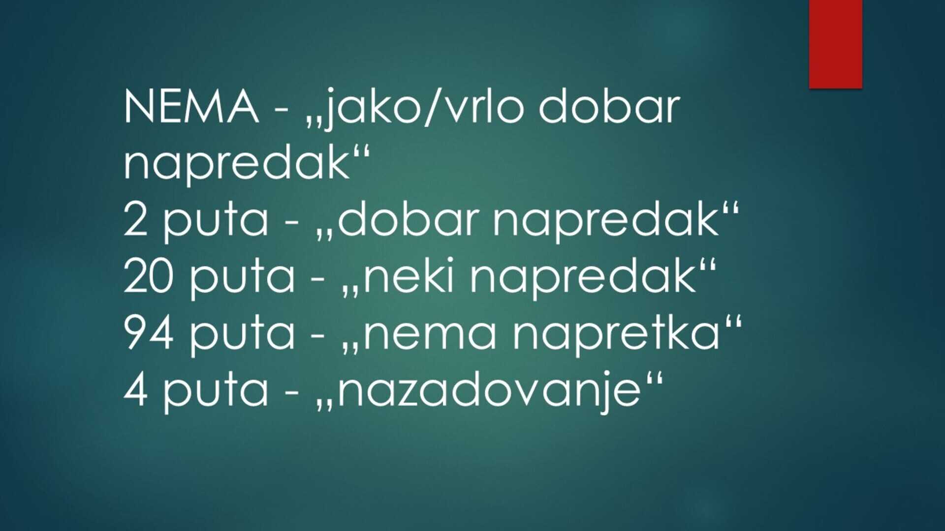 "Neki napredak" pominje se kao ocjena 20 puta.