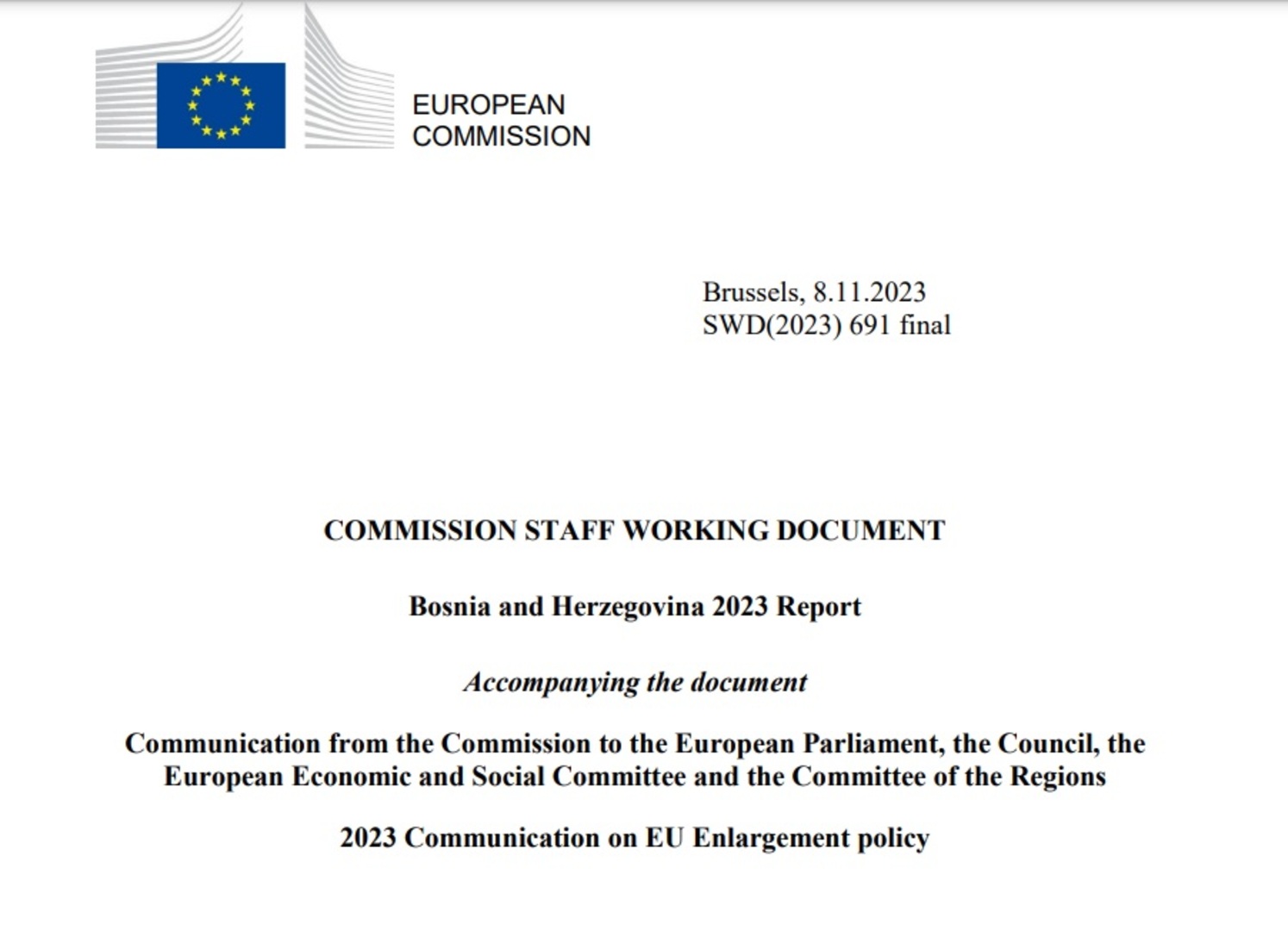 Evropska komisija 8. novembra objavila je detaljan izvještaj o napretku Bosne i Hercegovine prema Evropskoj uniji tokom ove godine.