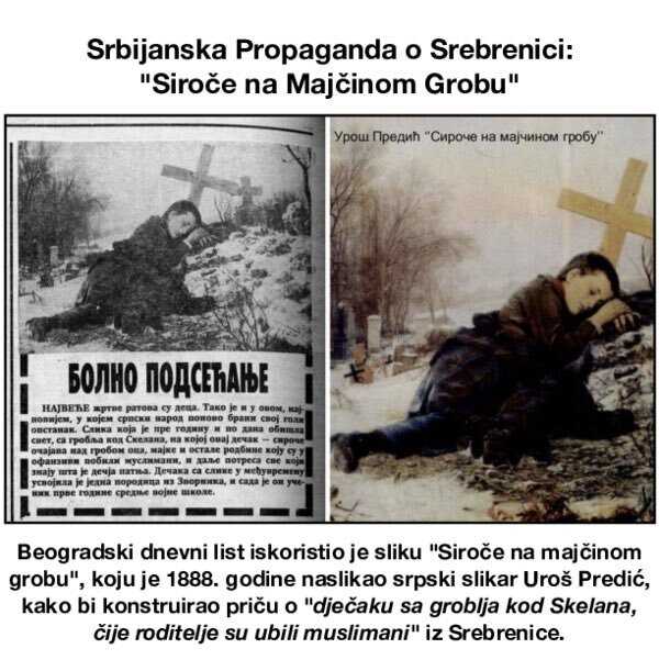 Druga slika Uroša Predića "Siroče na majčinom grobu" poslužila je mnogo kasnije kao prikaz. Slika je u formi reprinta objavljena tokom agresije na Bosnu i Hercegovinu uz opis da navodno prikazuje Skelane i dječaka čiju su rodbinu pobili muslimani.