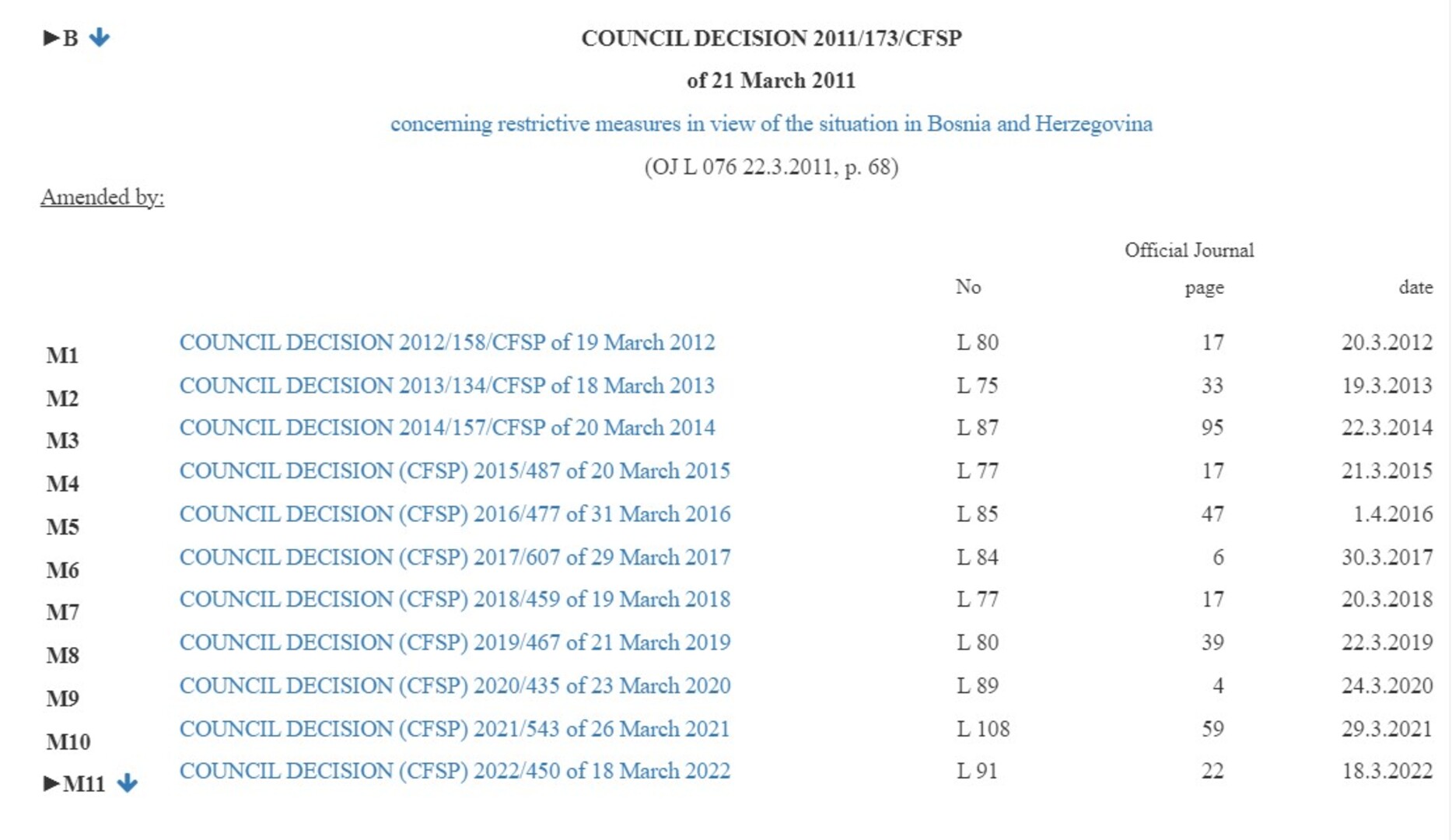 Od 2011. godine EU je sankcioni okvir produžavao svake godine. Na novih 365 (nekad i 366, kada je godina prestupna) dana.