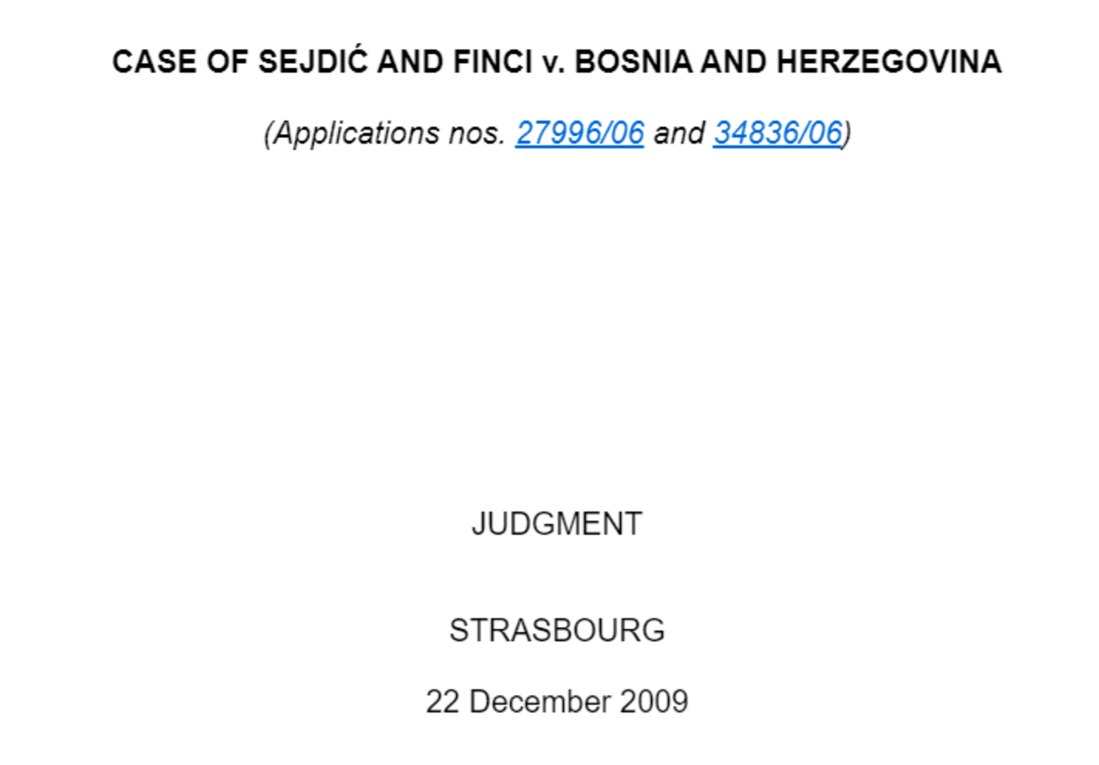 Sejdić je pred Evropskim sudom za ljudska prava u Strazburu glatko dobio Bosnu i Hercegovinu zbog diskriminatorne odredbe da se on, kao Rom, ne može kandidirati za neke od najvažnijih funkcija u državi.