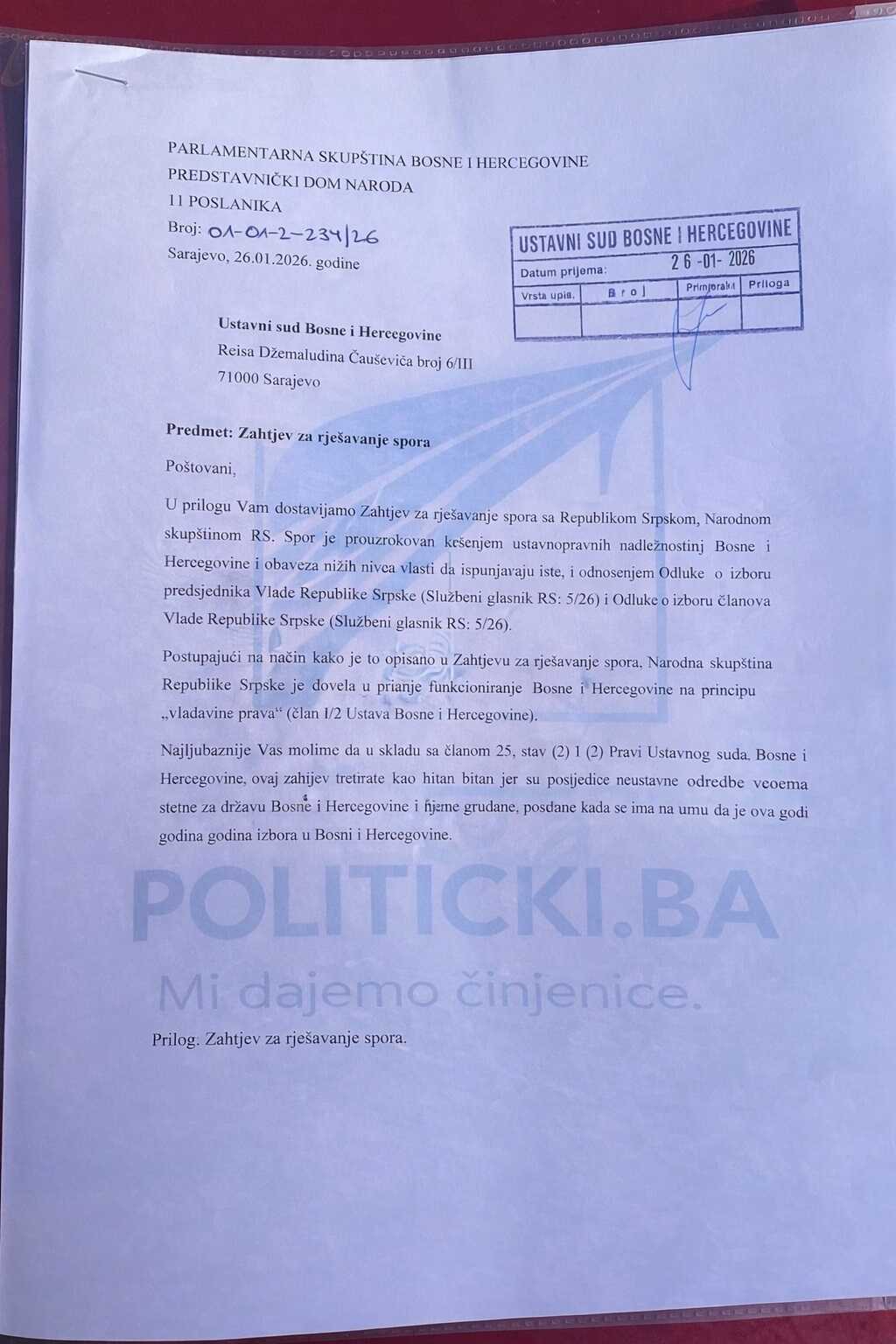Kako je Politicki.ba jučer ekskluzivno javio, ovim pravnim aktom osporava se izbor 19. vlade entiteta Rs na čelu s Savom Minićem.