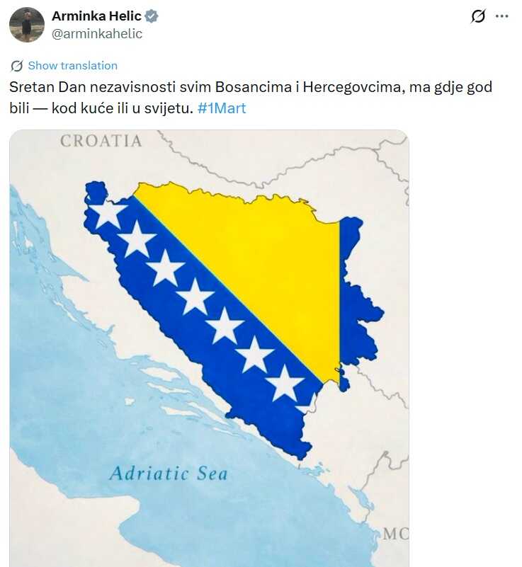 "Sretan Dan nezavisnosti svim Bosancima i Hercegovcima, ma gdje god bili — kod kuće ili u svijetu".