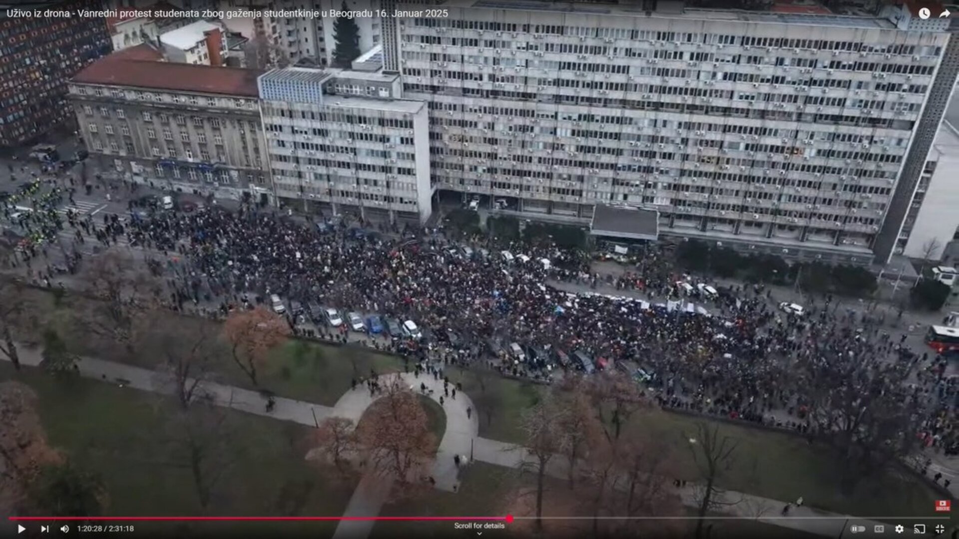 Studenti koji su protestirali zbog incidenta u Ruzveltovoj ulici u Beogradu, kada je povređena studentkinja Pravnog fakulteta koju je udario automobil, uputili su se preko Trga republike do svojih fakulteta koji se nalaze na Studentskom trgu i pozvali građane na generalni štrajk.