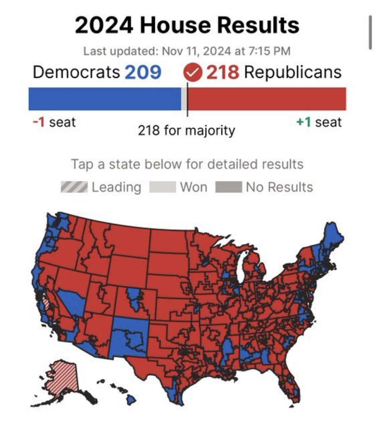Ovo glasilo blisko administraciji Donalda Trumpa javlja da će u donjem domu skupštine SAD sjediti 218 republikanaca i 209 demokrata.