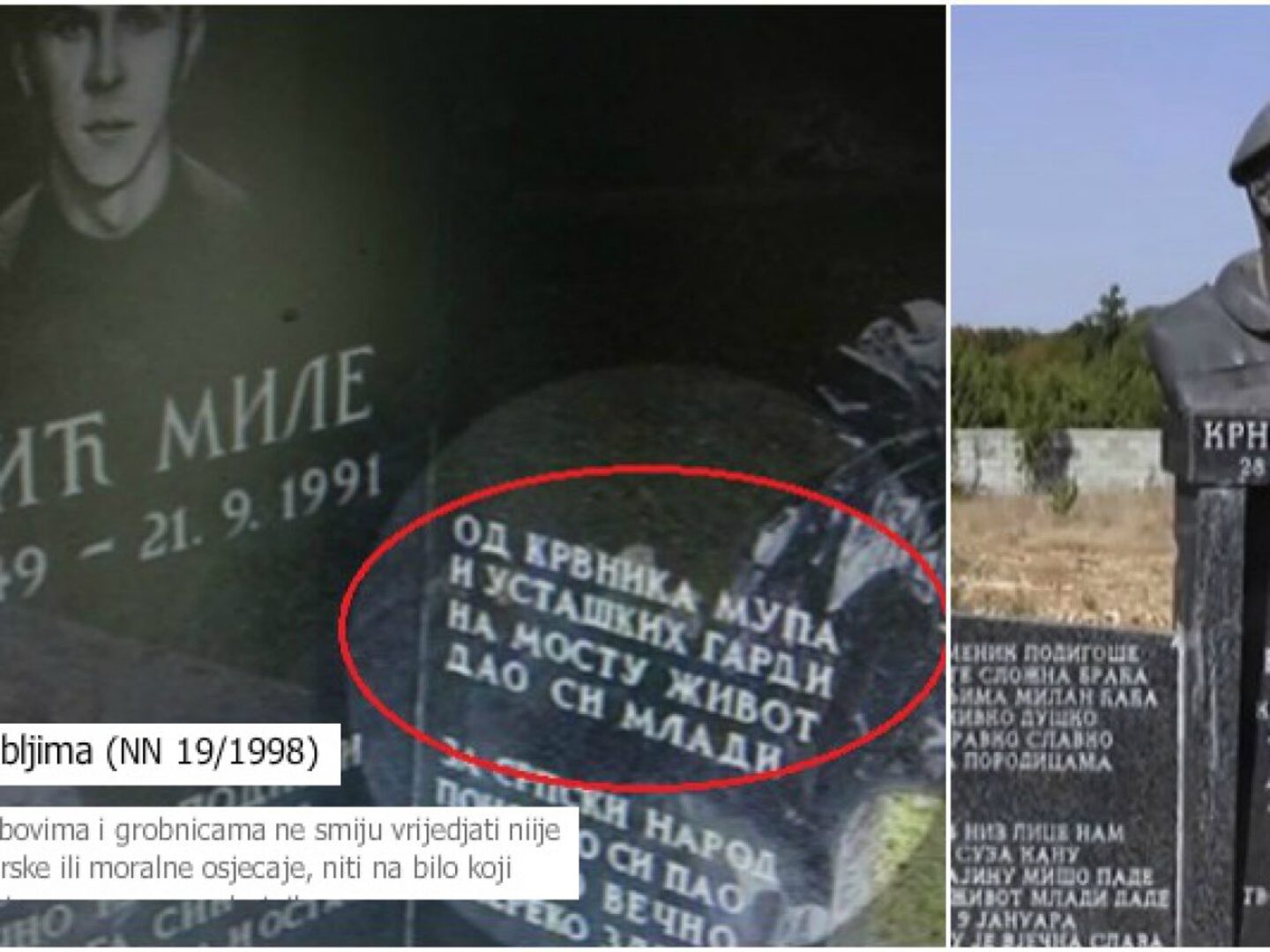 Problem sa ovakvim i sličnim spomenicima je nastao iako je postojećim zakonom predviđeno uklanjanje svih natpisa koji vređaju osećanja i koji su u suprotnosti sa vrednostima propisanim Ustavom. Međutim, postojeći zakon je stupio na snagu krajem februara 1998. godine, pa su svi spomenici podignuti prije toga ostali.