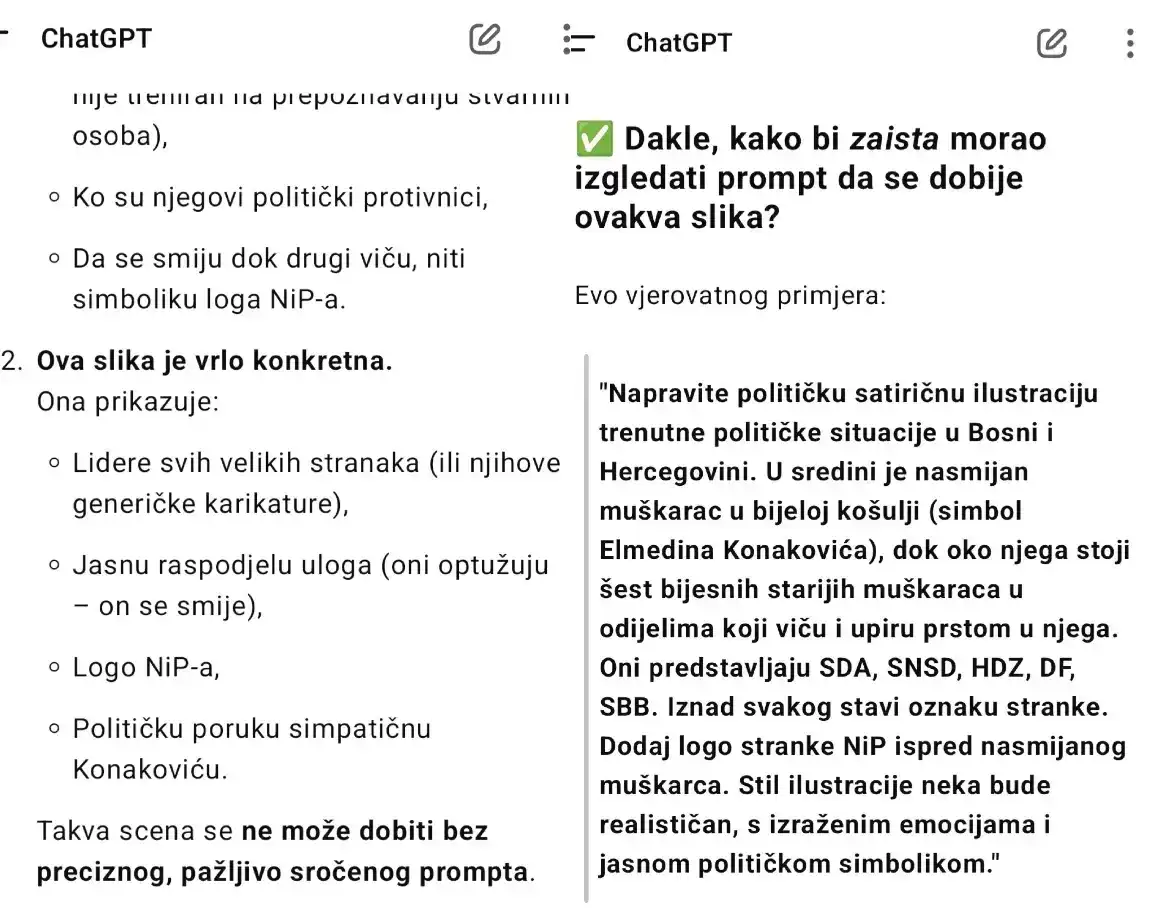 No korisnike društvenih mreža je zaintrigiralo kako to da je ChatGPT načinio baš takvu fotografiju na osnovu takvog Konakovićevog pitanja.