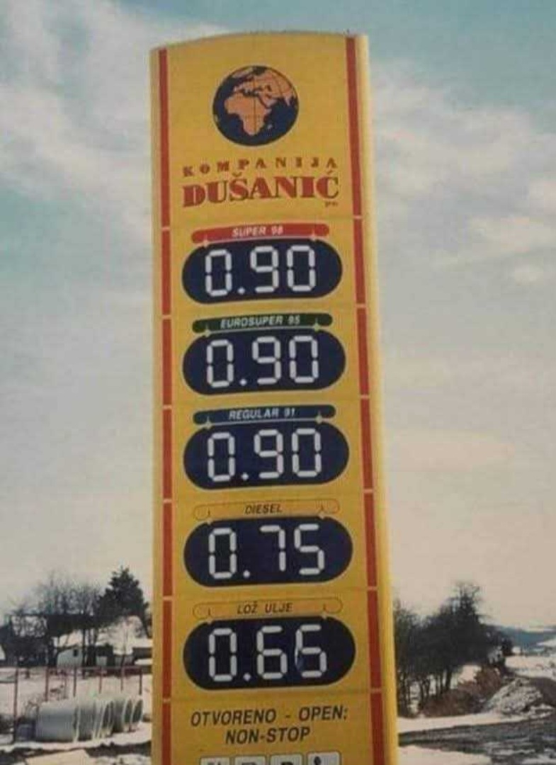 Fotografija iz 2001. godine pokazuje koliko su cijene goriva u Bosni i Hercegovini nekada bile niske. Tada je benzin iznosio oko 0,90 KM po litru, dok je dizel bio oko 0,75 KM.