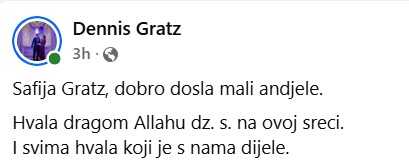 U poruci se zahvalio svima koji su s njegovom porodicom podijelili ovu radost.