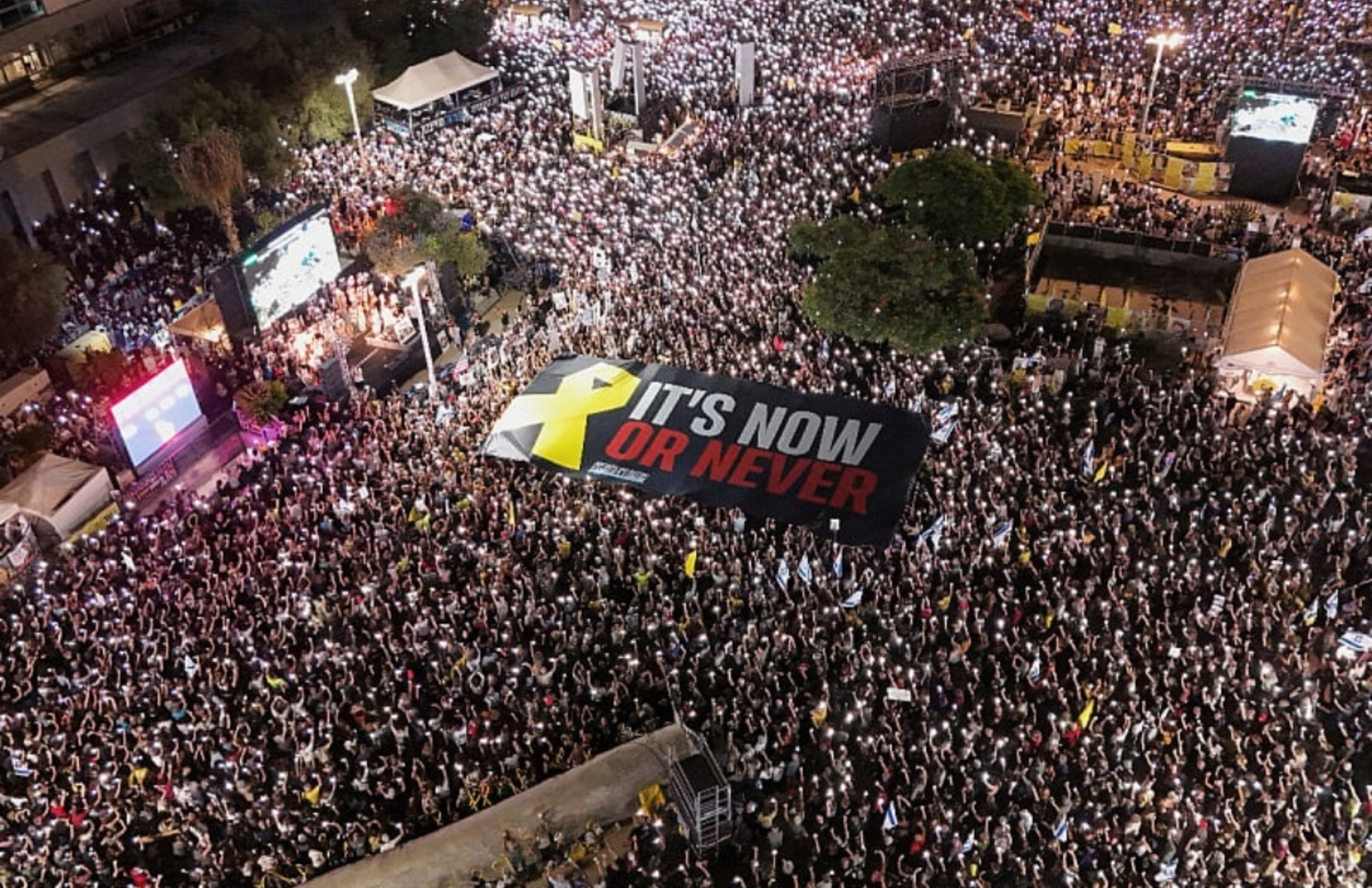 Desetine hiljada ljudi okupilo se na Trgu talaca u Tel Avivu, a stotine drugih ispred sjedišta IDF-a, blok dalje, kako bi protestvovali za sporazum o prekidu vatre u Gazi i taocima.