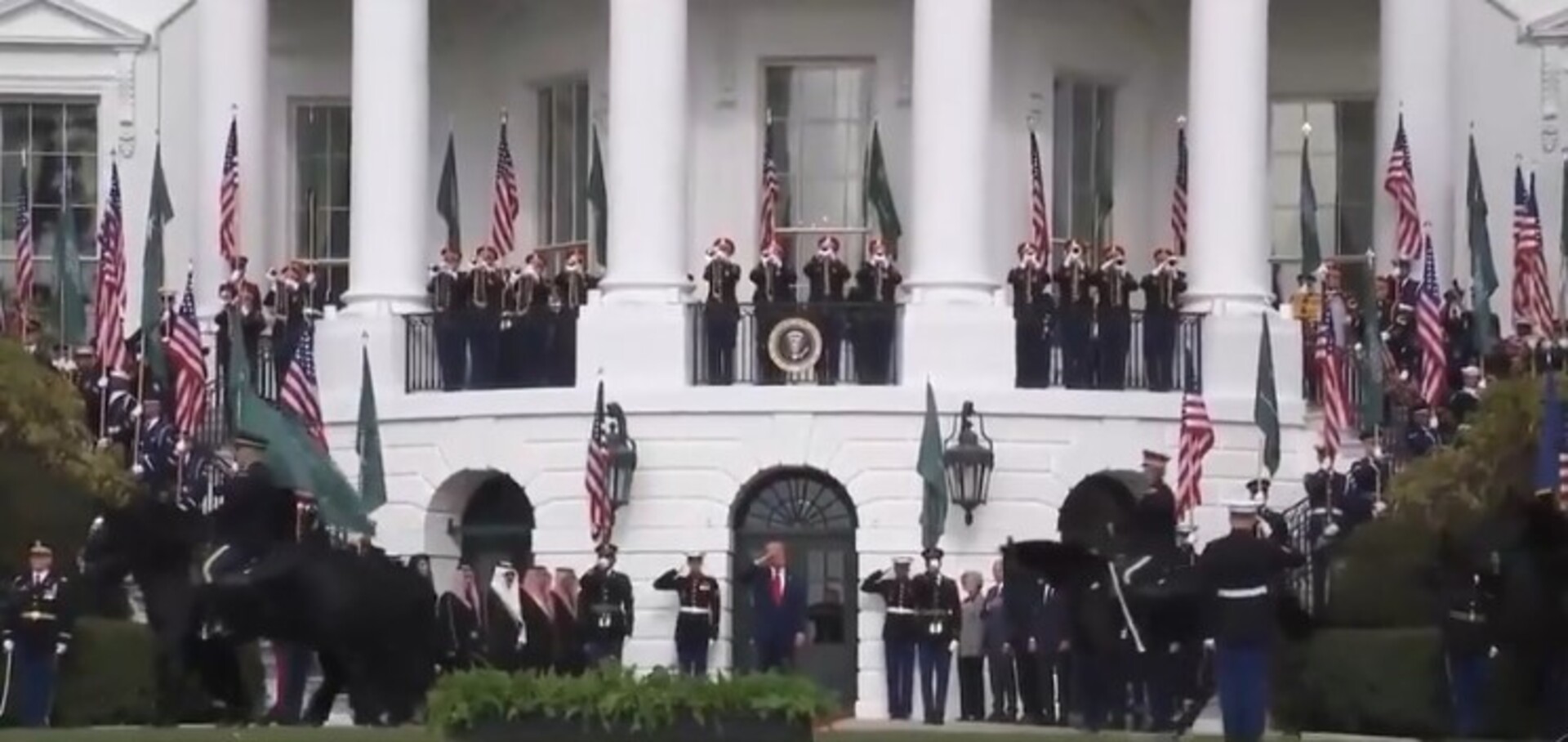 Ispred Bijele kuće vijorile su se desetine zastava Sjedinjenih Američkih Država i Saudijske Arabije, dok je postrojena počasna garda u punom sastavu čekala dolazak saudijskog prestolonasljednika.