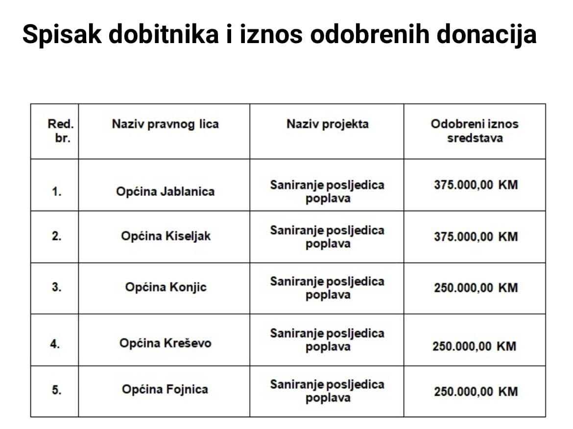 "A onda BH Telecom općini Kiseljak donira 375 000 KM isto koliko i općini Jablanica koja je najteže prošla, i mnogo više nego općini Konjic u kojoj je bilo i ljudskih žrtava za razliku od Kiseljaka u kojem nije bilo stradalih.