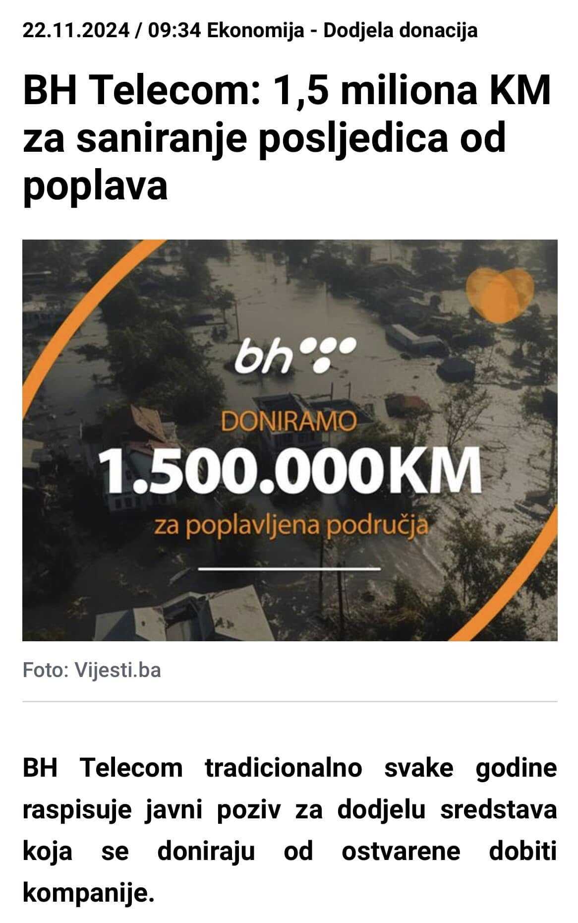 "Ostaje da vidimo koliko će HT Eronet donirati kojoj od općina stradalih u poplavama".