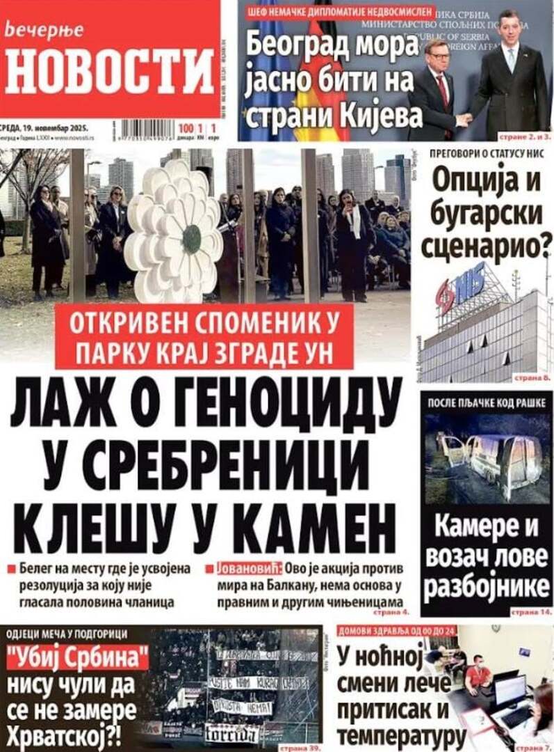 Beogradski dnevnik Večernje novosti, list poznat po objavljivanju zloglasnog "Memoranduma Srpske akademije nauka i umetnosti" koji je otvorio vrata zla na prostorima bivše Jugoslavije, nastavlja kampanju negiranja genocida u Srebrenici, nesumnjivo podržavanu od samog vrha vlasti u susjednoj Republici Srbiji, piše Radiosarajevo.ba.