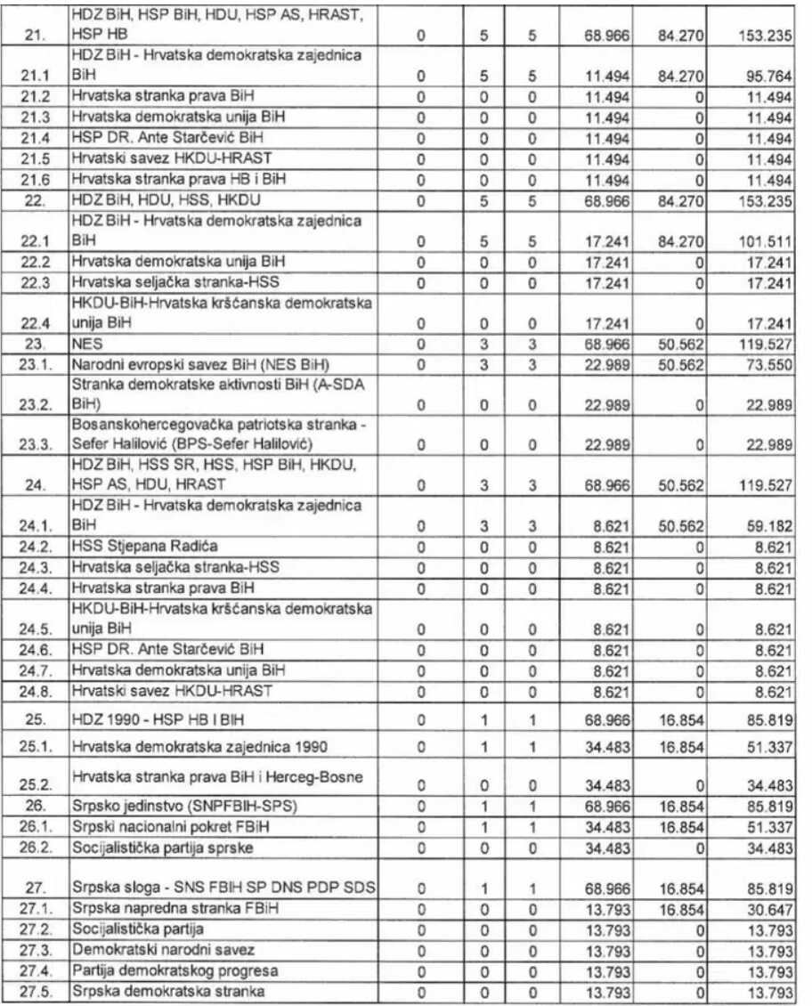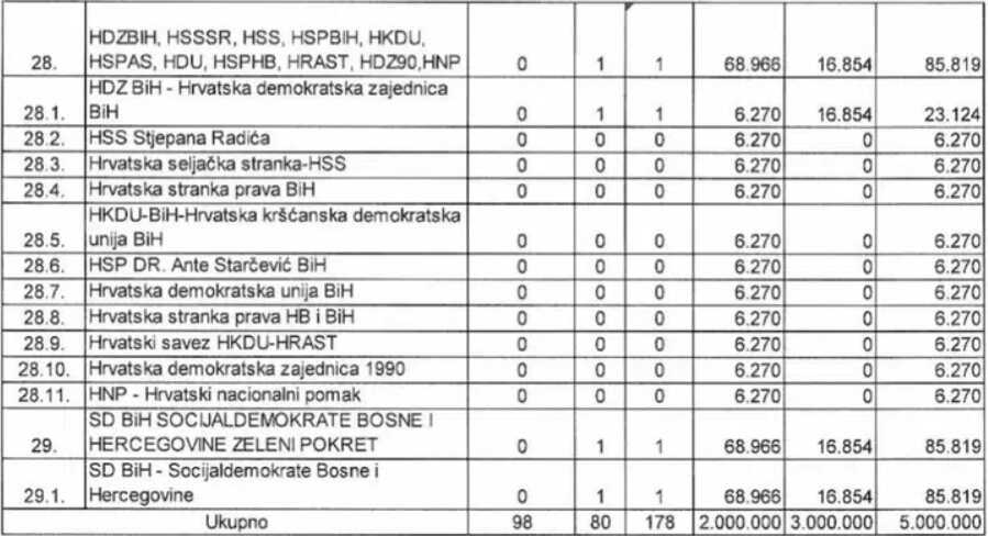 U nastavku donosimo tabelu s iznosima koji su dodijeljeni strankama: