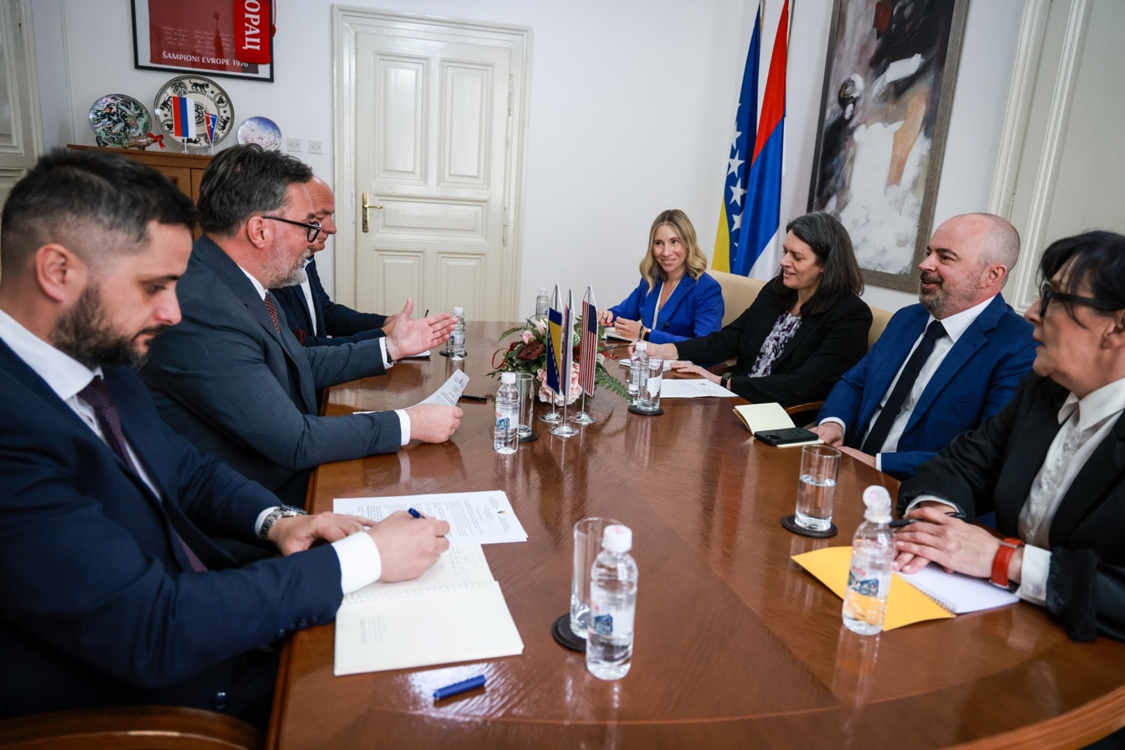 Otpravnik poslova John Ginkel sastao se danas s ministrom vanjske trgovine i ekonomskih odnosa BiH Stašom Košaracem kako bi razgovarali o konkretnim sljedećim koracima po ključnim ekonomskim i energetskim prioritetima SAD-a, uključujući pokretanje pregovora s Hrvatskom o sporazumu za uvoz američkog gasa s terminala za ukapljeni prirodni gas (UPG) Krk putem gasovoda Južna interkonekcija.