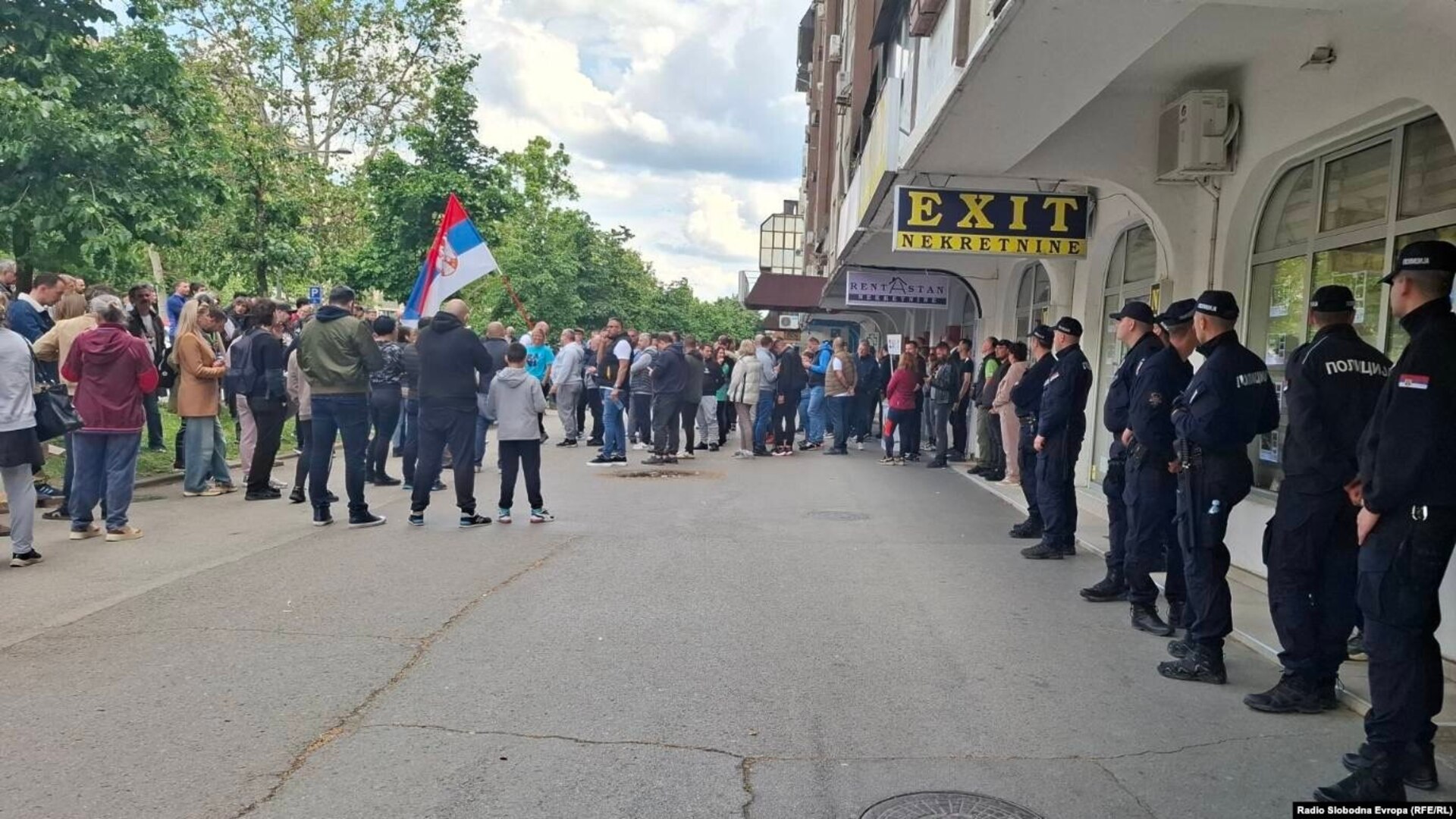 Građani Novog Sada okupili su u nedjelju 18. maja ispred prostorija vladajuće Srpske napredne stranke (SNS) negodujući pošto su aktivisti SNS postavili štandove na kojima dijele promotivni materijal.