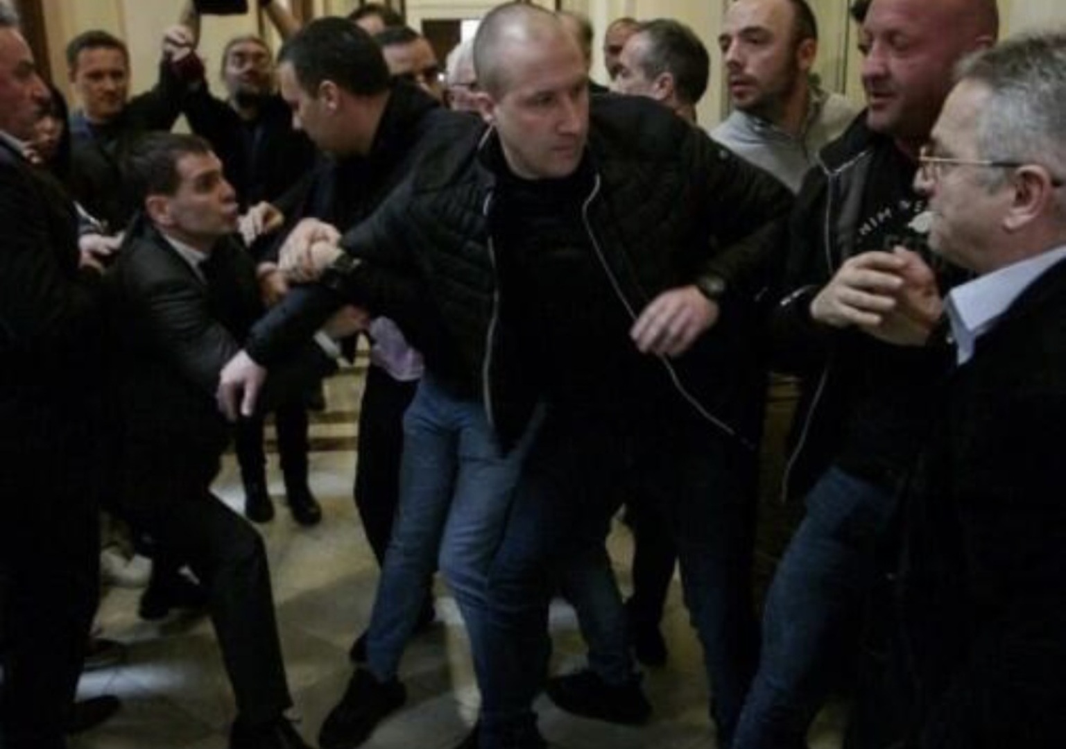 Poslanici POKS-a i Novog DSS duvali su u pištaljke i došlo je do guranja sa obezbjeđenjem ispred sale, a jedan deo poslanika NADA ušao je u salu i ometaju rad.