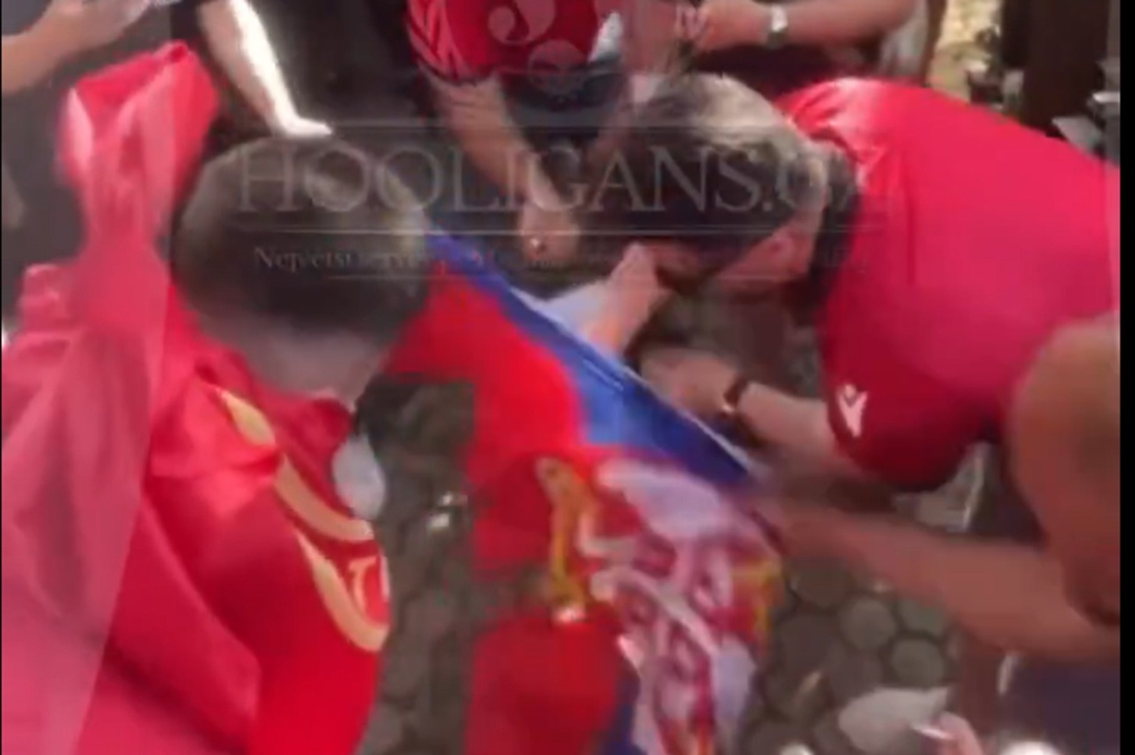 Prema dostupnim snimcima i svjedočenjima građana, navijači su na Trgu Skenderbeg, u blizini zgrade albanske vlade, skinuli i rasparali srbijansku zastavu koja je bila postavljena zajedno s drugim državnim obilježjima u znak dobrodošlice reprezentacijama.