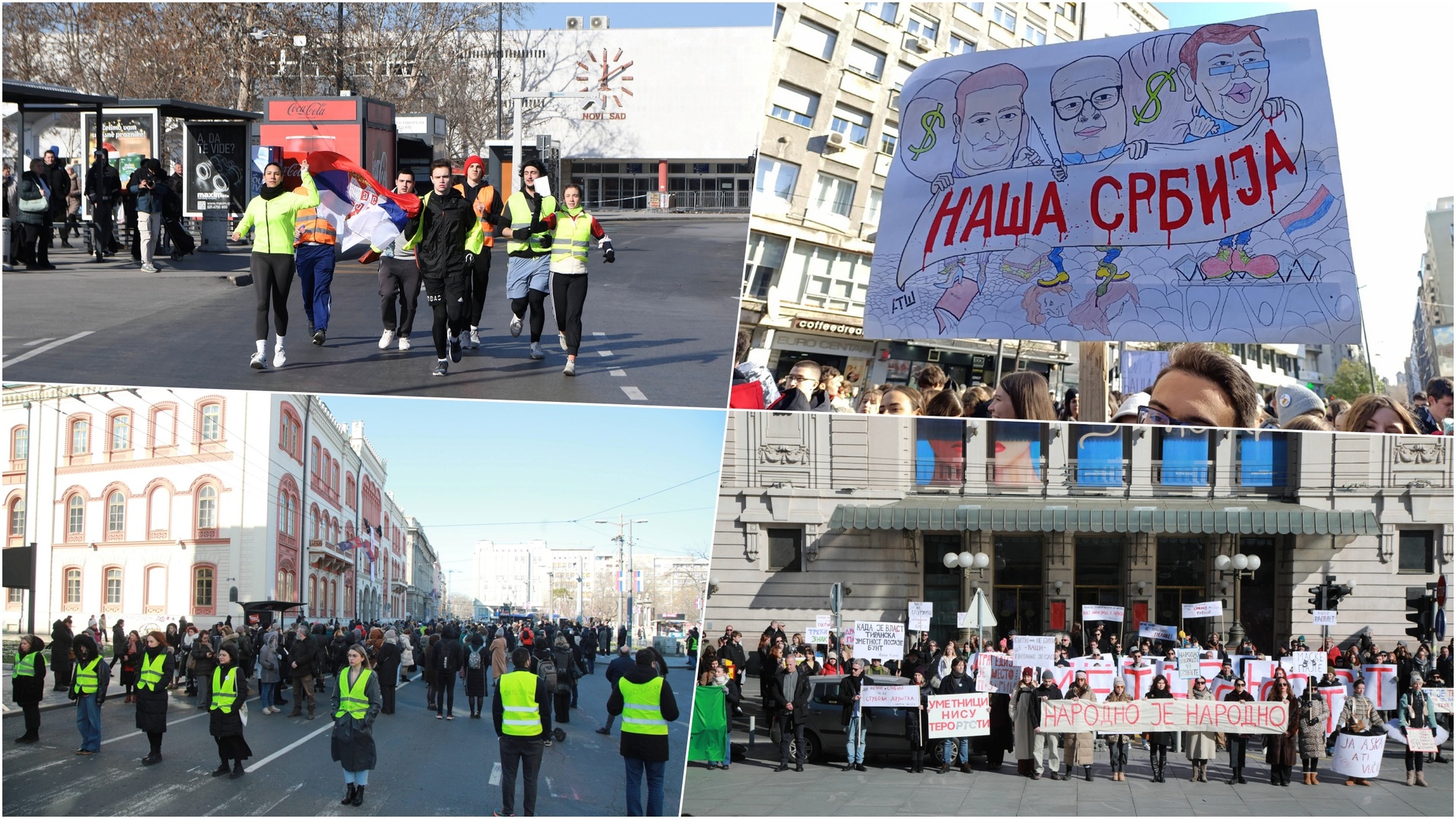 Iz Novog Sada, mjesta iz kojeg su protesti krenuli, nakon pada nastrešnice tek obnovljene Željezničke stanice, kada je poginulo 15 osoba, među kojima je bilo i djece, krenula je štafeta protesta prema Kragujevcu.