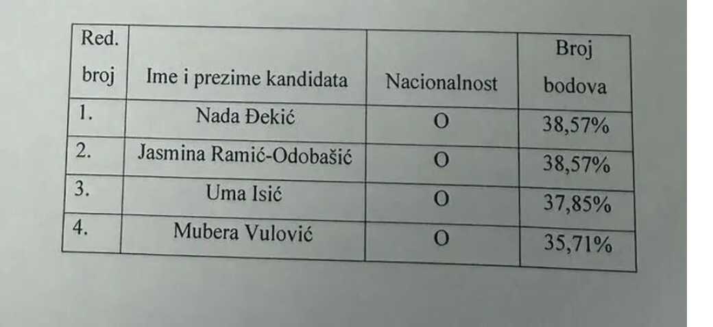 Nakon što je provedena konkursna procedura, sačinjena je lista kandidata. Prvorangirane su, sa istim brojem bodova, Jasmina Ramić-Odobašić i Nada Đekić. No, Marinko Čavara, objavio je portal Raport, odlučio je da na listi kao prvorangiranu istakne SNSD-ovu kandidatkinju Nadu Đekić kako bi se Predstavnički dom prvo o njoj izjašnjavao.