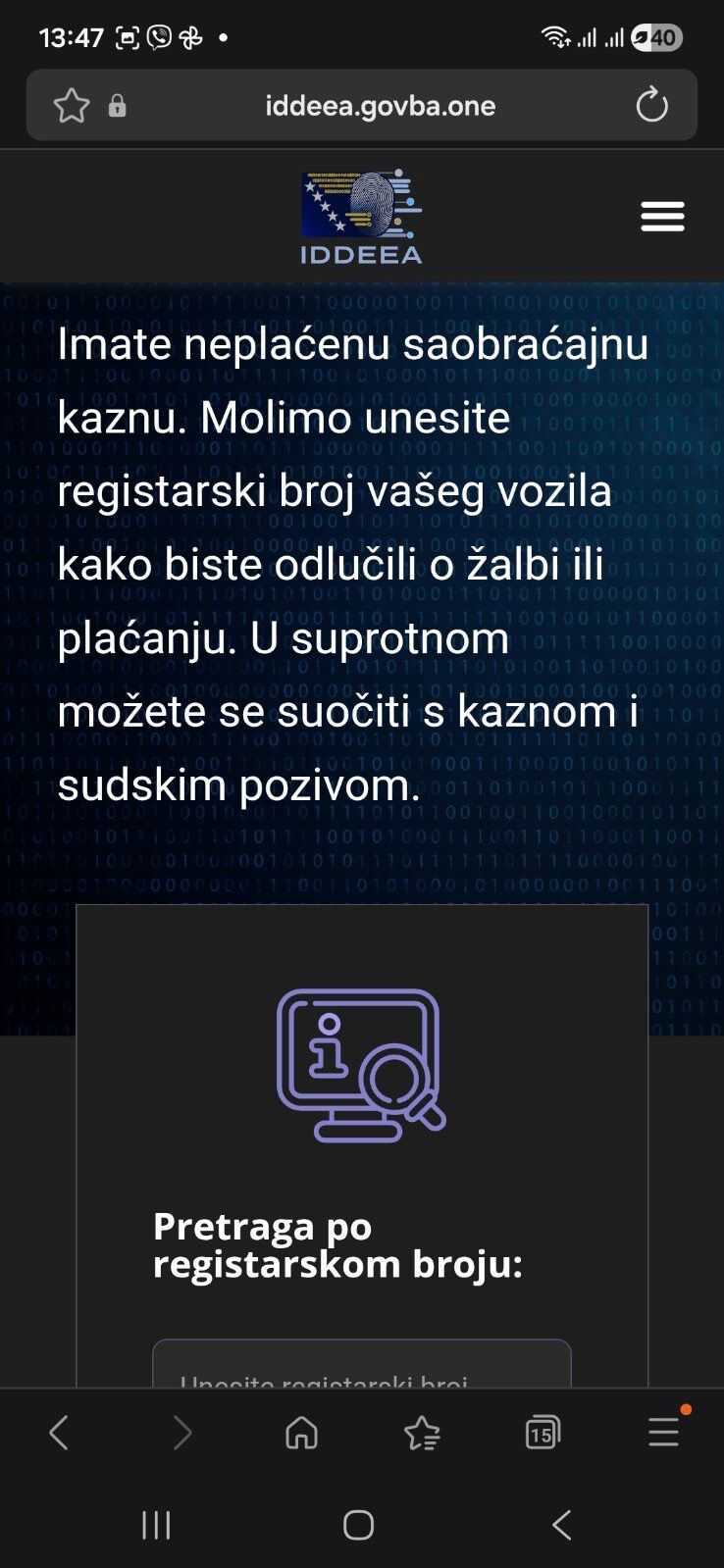 Građanima se šalju poruke u kojima se lažno navodi postojanje saobraćajnih kazni, hitnih rokova za plaćanje, pravnih posljedica i navodnih registara dužnika, uz dostavljanje sumnjivih internet linkova koji nemaju nikakve veze sa zvaničnim sistemima institucija Bosne i Hercegovine.