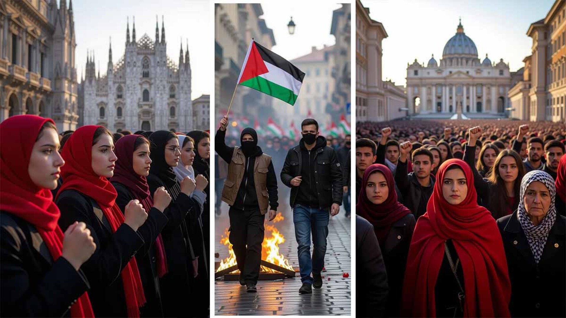 U Rimu se više od 20.000 ljudi okupilo ispred željezničke stanice Termini, mašući palestinskim zastavama i skandirajući "slobodna Palestina".
