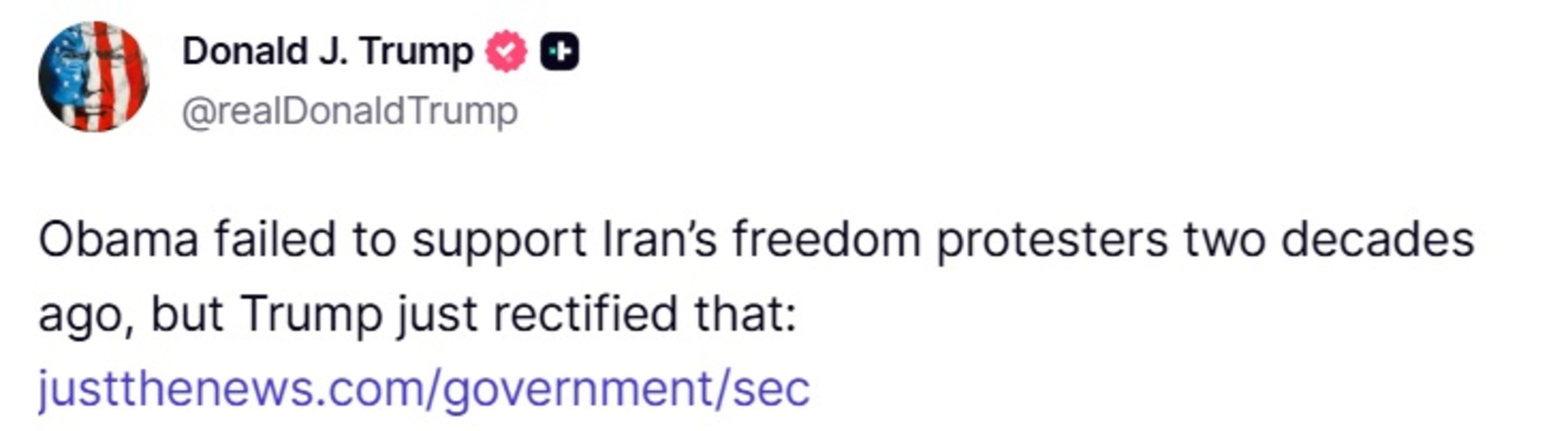 Bivši analitičar CIA-e i nekadašnji šef Nacionalnog vijeća za sigurnost SAD-a Fred Fleitz za JustTheNews je izjavio da Trump, za razliku od administracije Baracka Obame, jasno i bez zadrške staje uz prodemokratske pokrete na Bliskom istoku.