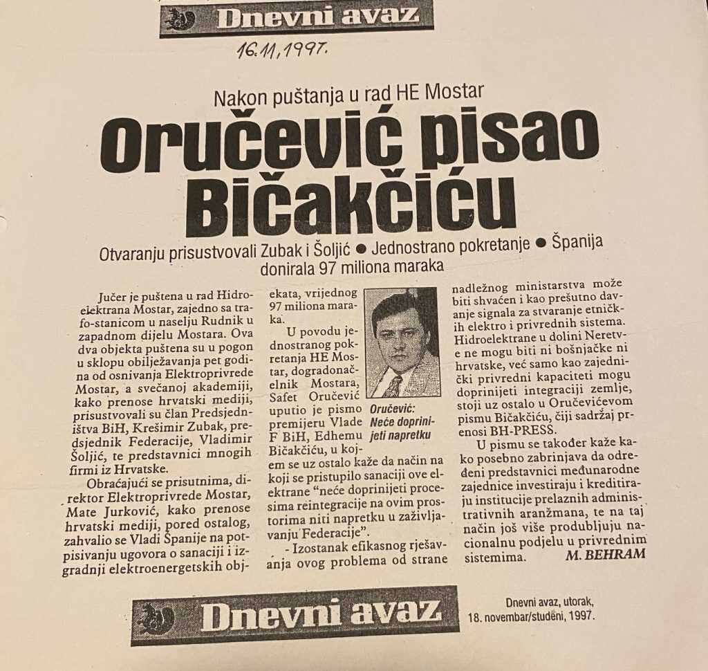 Tadašnji gradonačelnik Mostara, Safet Oručević zahtjevao je od predsjednika Vlade Federacije BiH Edhema Bičakčića pojašnjenja i adekvatnu reakciju, ali je ona izostala nakon čega je u Mostaru i vrapcima na grani bilo jasno da je “političko Sarajevo”, koje je u izvršnoj vlasti tada predstavljao upravo Bičakčić, poklonilo taj elektroenergetski objekat HDZ-u.
