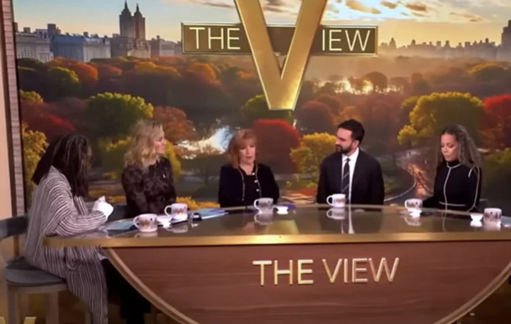 Mamdanija je o njegovim uvjerenjima o Izraelu ispitivala suvoditeljica emisije "The View", Sara Haines, čiji je muž jevrej. Noseći žutu značku za izraelske zarobljenike, rekla je Mamdaniju da je "davao zapaljive izjave, poput nazivanja Izraela državom apartheida i dovođenja u pitanje njegovog prava da postoji kao jevrejska država".