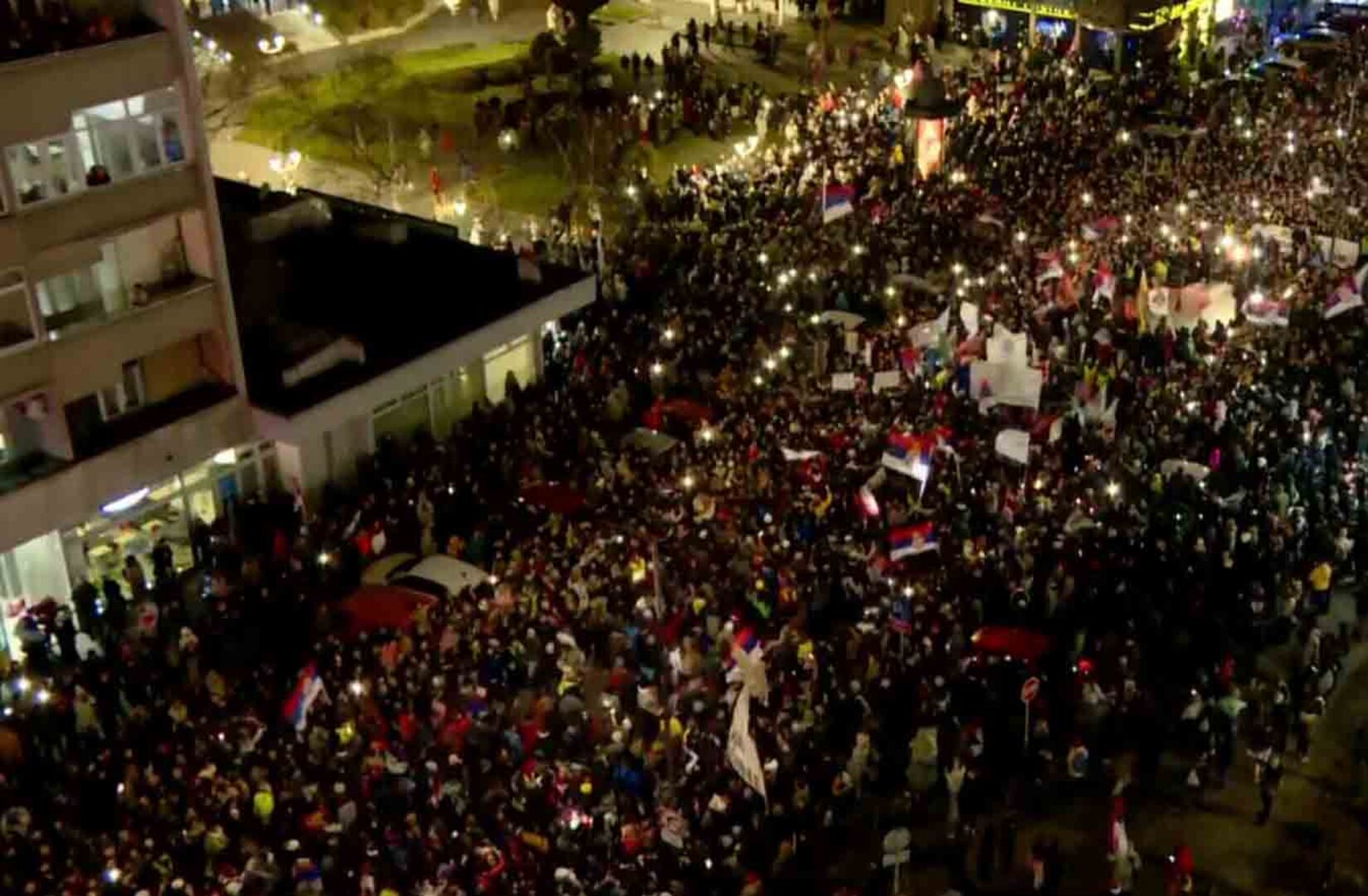 Studenti koji su iz tri pravca krenuli prema Kragujevcu okupili su se večeras u 19:30 na Trgu Slobode, ispred Skupštine grada Kragujevca, objavljeno je na Instagram profilu kragujevačkih studenata u blokadi.