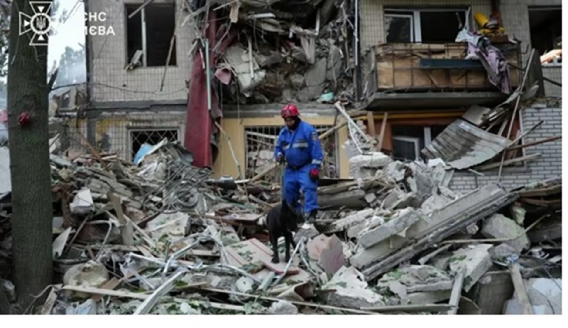 Predsjednik Volodimir Zelenski objavio je video snimak zapaljenih ruševina, rekavši da su ljudi još uvijek zarobljeni ispod ruševina jedne stambene zgrade.