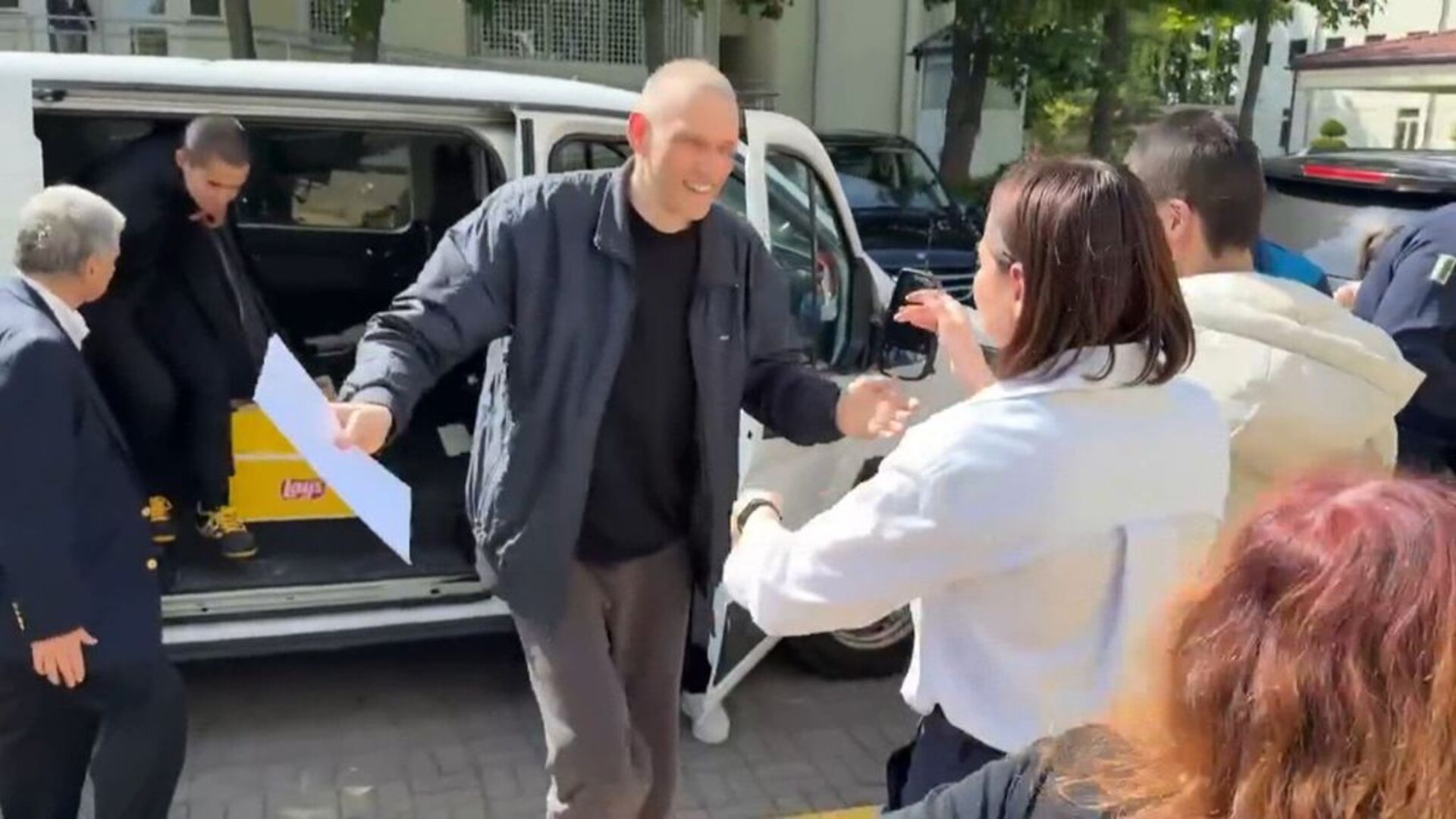 Snimci prikazuju Tihanovskog kako izlazi iz automobila i grli svoju suprugu u glavnom gradu Litvanije, Vilniusu.